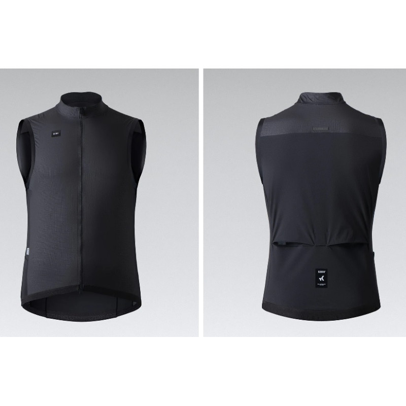 El panel frontal, en tejido de nylon y elastano con acabado texturizado, actúa como barrera contra el viento y favorece la dispersión del aire. El cuello elevado y ergonómico protege frente al frío, mientras que el panel posterior, en tejido elástico ultraligero, evacúa eficazmente el calor en esfuerzos intensos. En los hombros, un tejido tipo neopreno asegura ajuste sin presión.